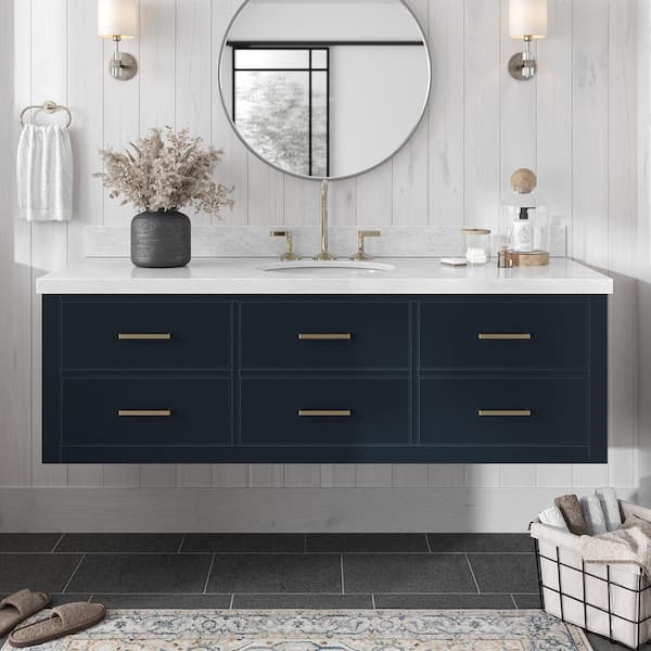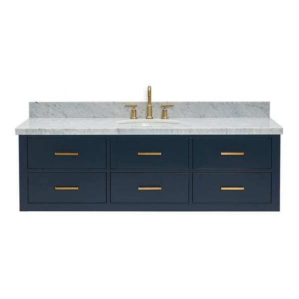 Hutton 61 in. W x 22 in. D x 19.6 in. H Bath Vanity in Blue with Carrara White Marble Top