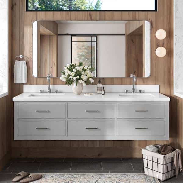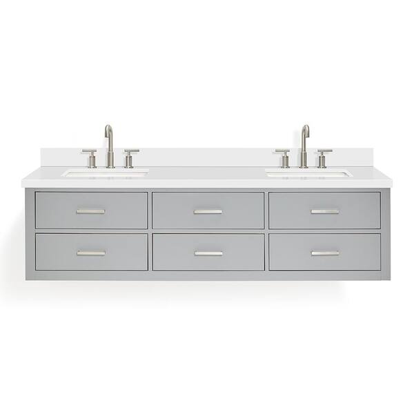 Hutton 73 in. W x 22 in. D x 19.6 in. H Bath Vanity in Grey with Pure White Quartz Top