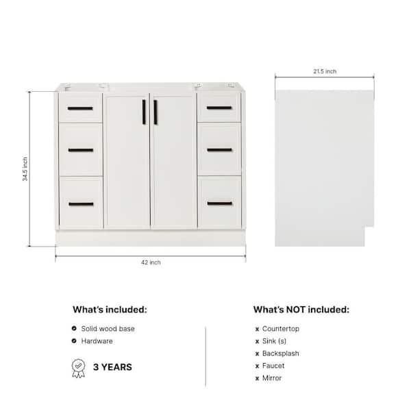 Kelly 42 in. W x 21.5 in. D x 34.5 in. H Bath Vanity Cabinet without Top in White