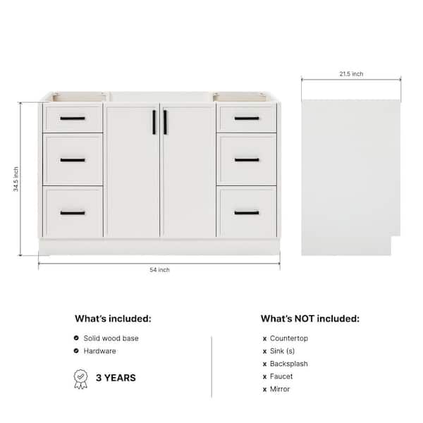 Kelly 54 in. W x 21.5 in. D x 34.5 in. H Bath Vanity Cabinet without Top in White