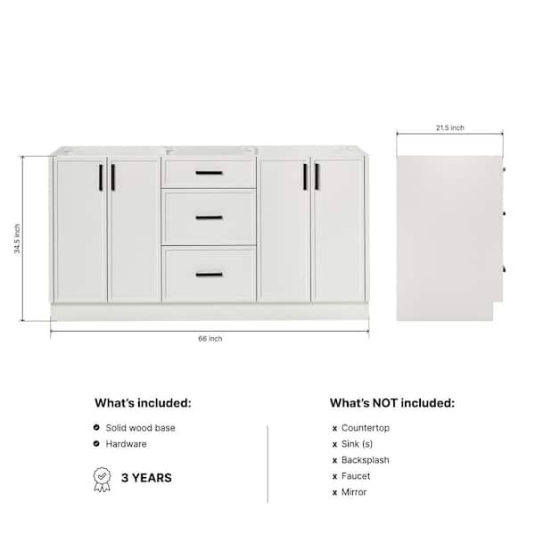 Kelly 66 in. W x 21.5 in. D x 34.5 in. H Bath Vanity Cabinet without Top in White