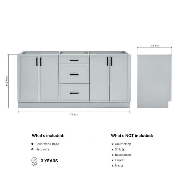 Kelly 72 in. W x 21.5 in. D x 34.5 in. H Bath Vanity Cabinet without Top in Gray