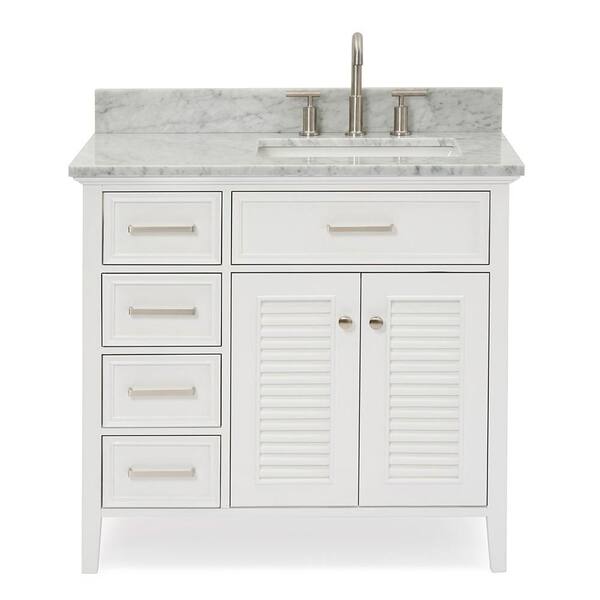Kensington 37 in. W x 22 in. D x 35.25 in . H Freestanding Bath Vanity in White with White Marble Top