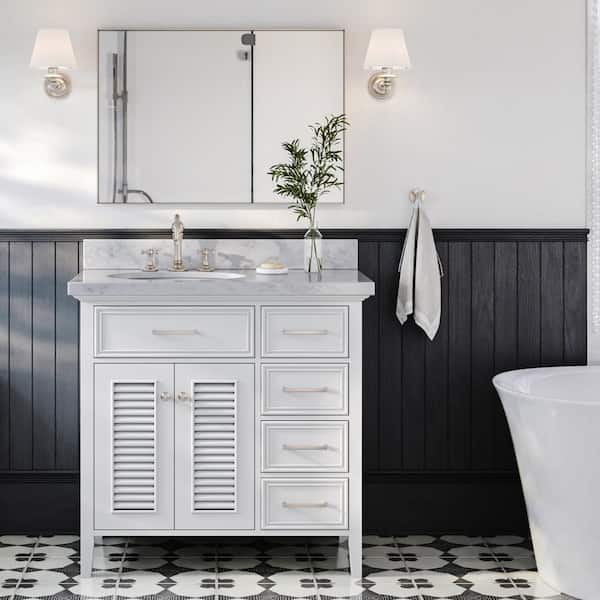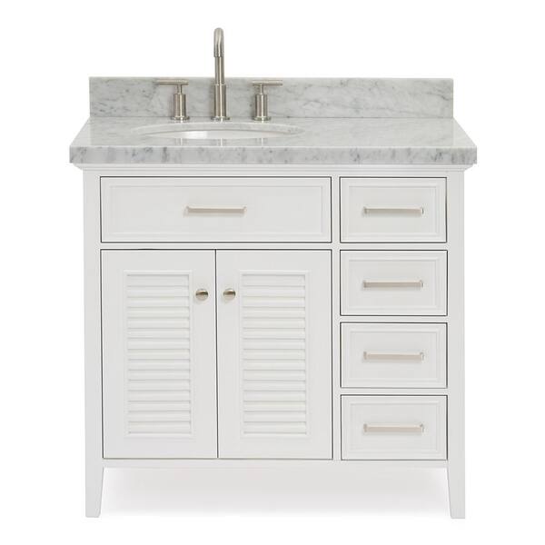 Kensington 37 in. W x 22 in. D x 36 in. H Freestanding Bath Vanity in White with White Marble Top