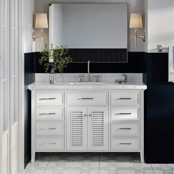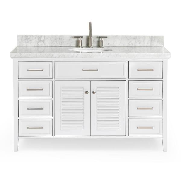Kensington 55 in. W x 22 in. D x 36 in. H Freestanding Bath Vanity in White with White Marble Top