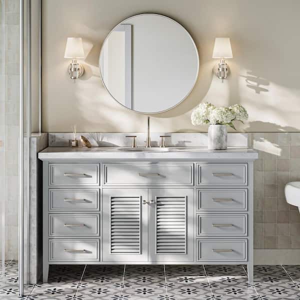 Kensington 60.25 in. W x 22 in. D x 36 in. H Double Sink Freestanding Bath Vanity in Grey with Carrara White Quartz Top