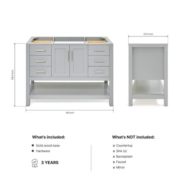 Magnolia 48 in. W x 21.5 in. D x 34.5 in. H Bath Vanity Cabinet without Top in Gray