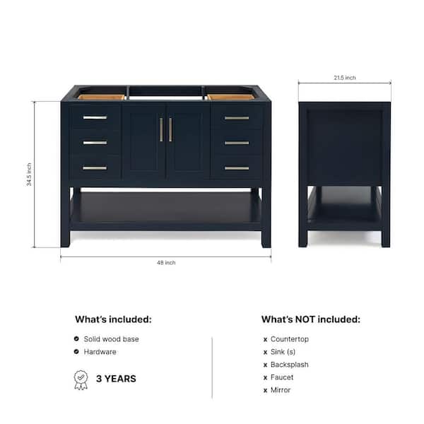 Magnolia 48 in. W x 21.5 in. D x 34.5 in. H Bath Vanity Cabinet without Top in Midnight Blue