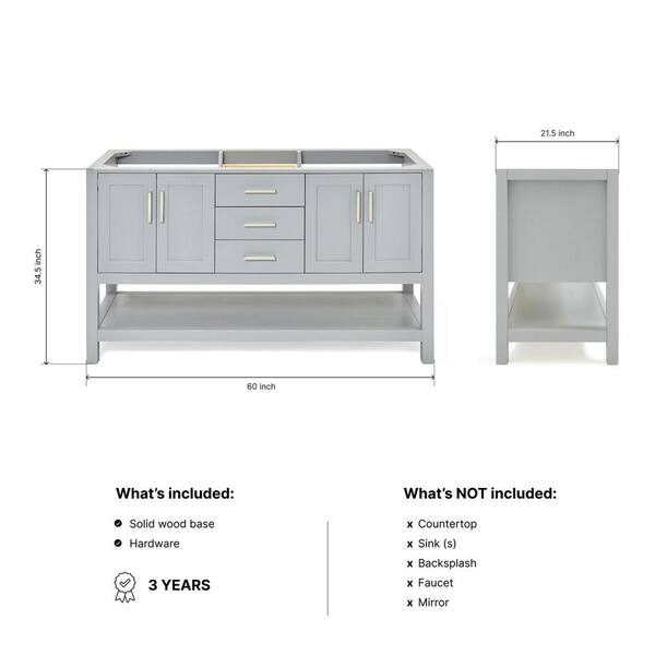 Magnolia 60 in. W x 21.5 in. D x 34.5 in. H Bath Vanity Cabinet without Top in Gray