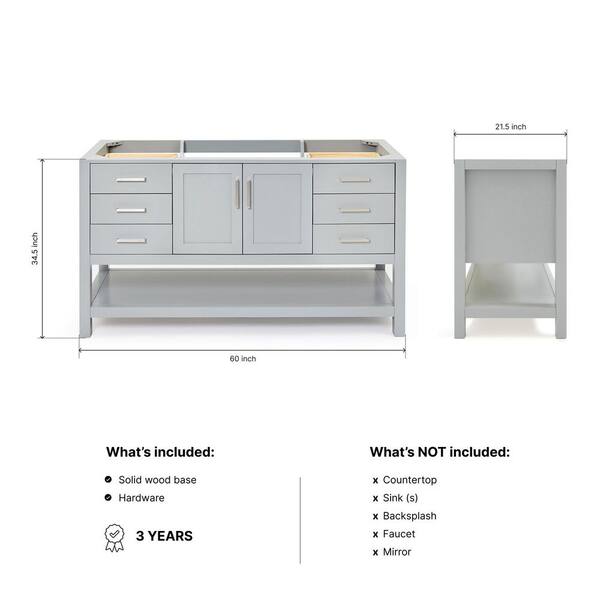 Magnolia 60 in. W x 21.5 in. D x 34.5 in. H Bath Vanity Cabinet without Top in Gray