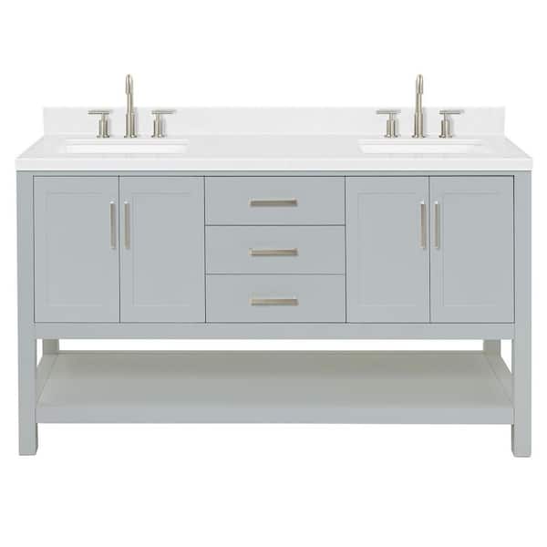 Magnolia 60 in. W x 22 in. D x 36 in. H Double Sink Freestanding Bath Vanity in Gray with Carrara Quartz Top