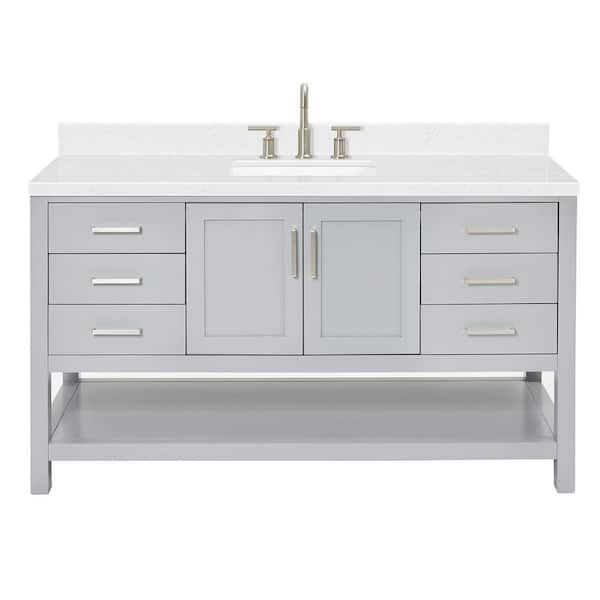 Magnolia 60 in. W x 22 in. D x 36 in. H Single Sink Freestanding Bath Vanity in Gray with Carrara Quartz Top