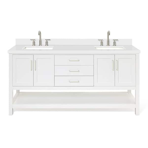 Magnolia 72 in. W x 22 in. D x 36 in. H Bath Vanity in White with White Pure Quartz Vanity Top with White Basins