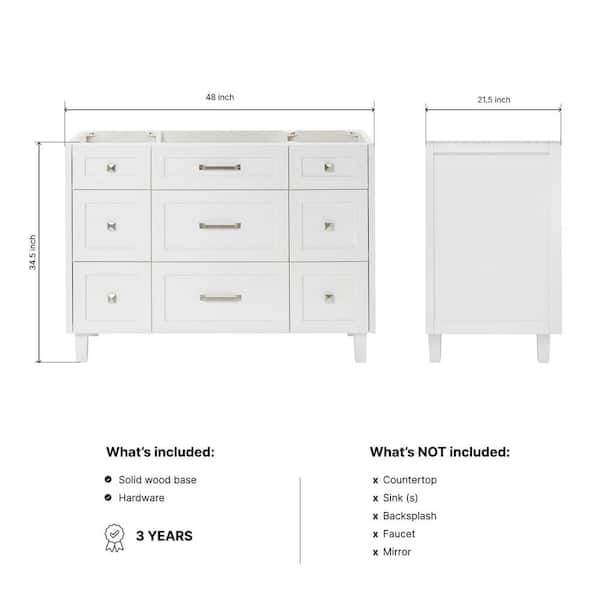 Monroe 48 in. W x 21.5 in. D x 34.5 in. H Bath Vanity Cabinet without Top in White