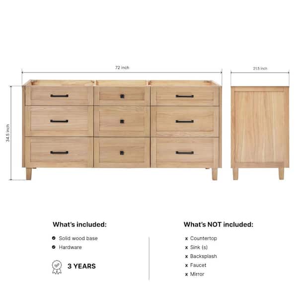 Monroe 72 in. W x 21.5 in. D x 34.5 in. H Bath Vanity Cabinet without Top in Oak