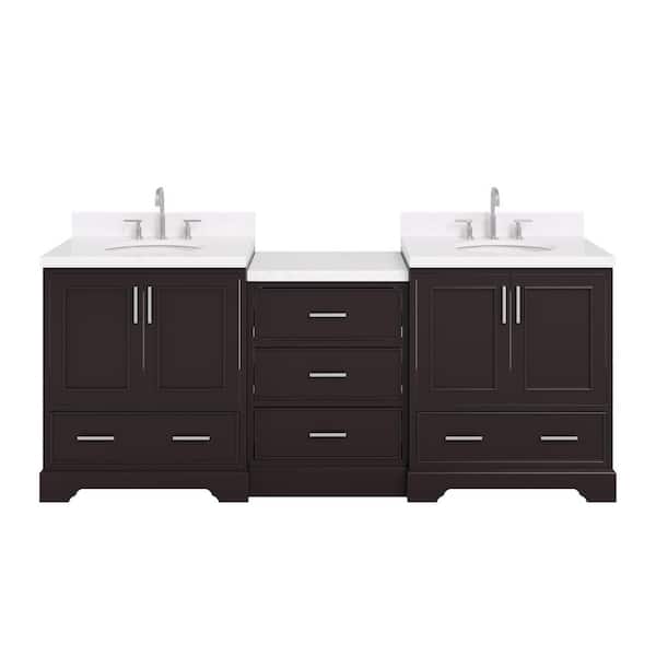 Stafford 85 in. W x 22 in. D x 36 in. H Double Sink Bath Vanity in Espresso with Carrara White Quartz Top