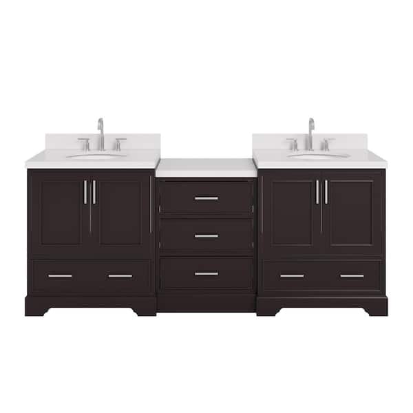 Stafford 85 in. W x 22 in. D x 36 in. H Double Sink Bath Vanity in Espresso with Pure White Quartz Top
