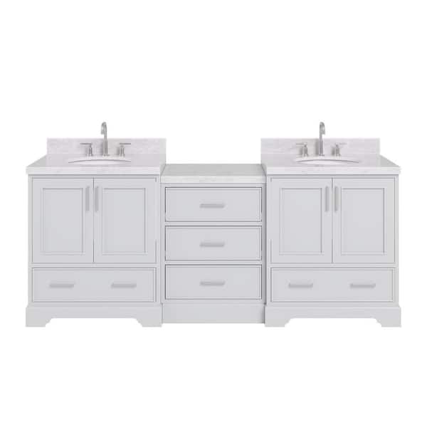 Stafford 85 in. W x 22 in. D x 36 in. H Double Sink Bath Vanity in Gray with Italian Carrara Marble Top