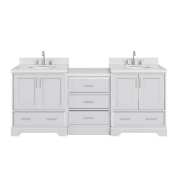 Stafford 85 in. W x 22 in. D x 36 in. H Double Sink Bath Vanity in Gray with Pure White Quartz Top