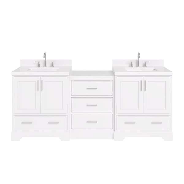Stafford 85 in. W x 22 in. D x 36 in. H Double Sink Bath Vanity in White with Carrara White Quartz Top
