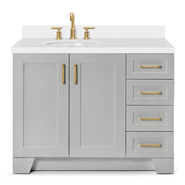 Taylor 42 in. W x 22 in. D x 36 in. H Freestanding Bath Vanity in Gray with Pure White Quartz Top