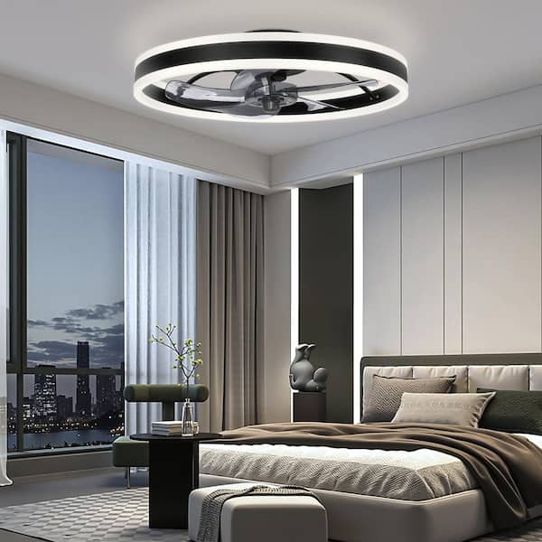 20 in. Indoor Smart Ceiling Fans with Lights with Remote&APP, Low Profile Ceiling Fan, 6 Speed Reversible Blades-Black
