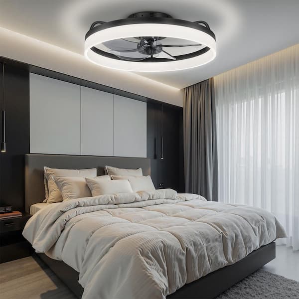 20 in. LED Indoor Black Low Profile Flush Mount Ceiling Fan with Light Remote Control for Bedroom, Small Room
