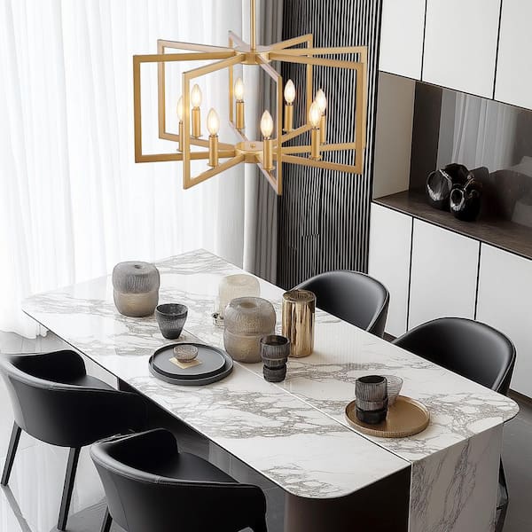 8-Light Golden Geometric Chandelier, Industrial Metal Pendant Light Fixture for Living Room, Kitchen (Bulb Not Included)
