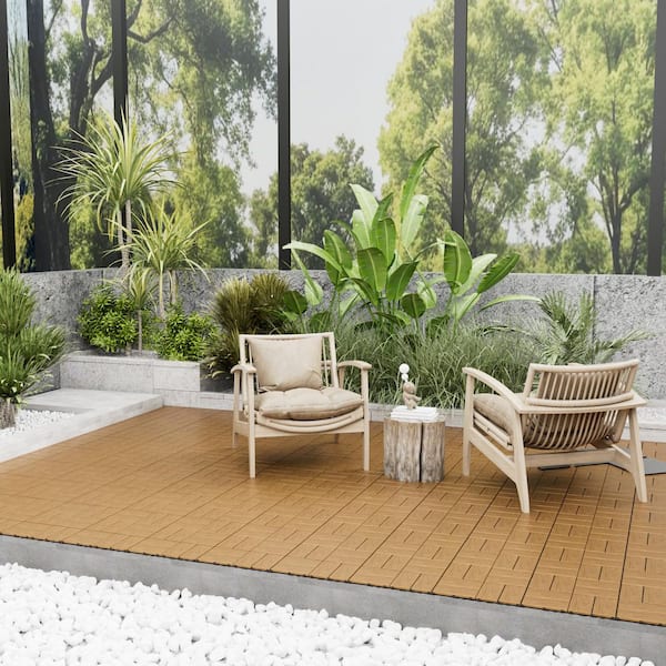 1 ft. x 1 ft. Waterproof Knurling Slat Composite Deck Tile for Patio Garden Poolside in Timber (Pack of 30 Tiles)