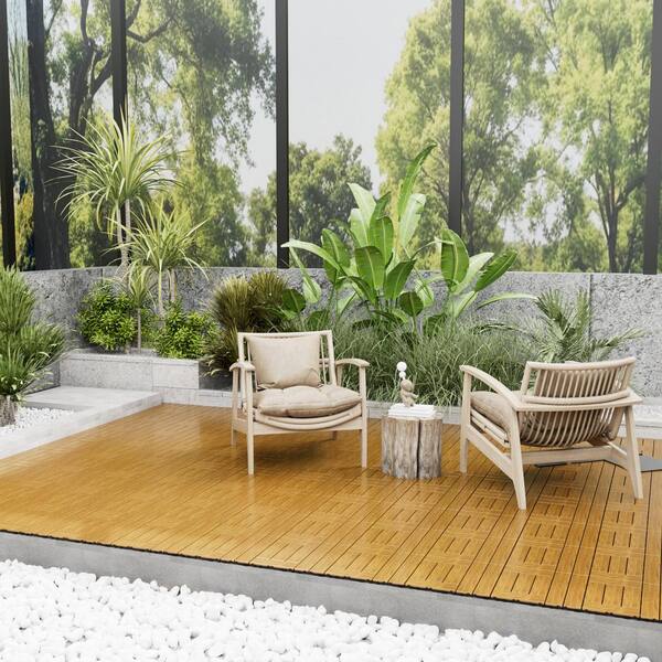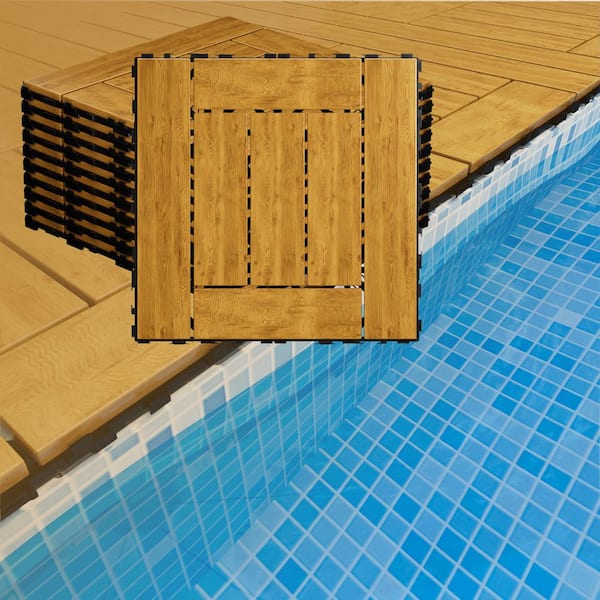 1 ft. x 1 ft. Waterproof Solid Pine Wood Deck Tile for Patio Garden Poolside Primed in Natural Grain(Pack of 30 Tiles)