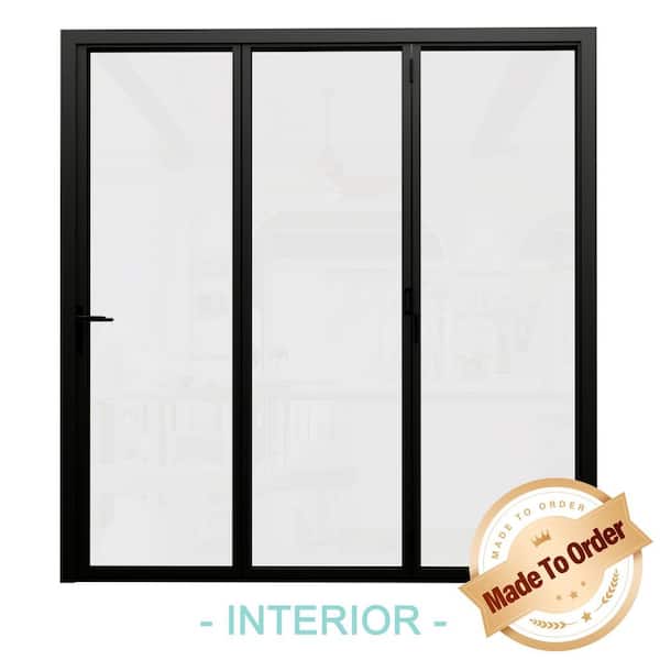 108 in. x 96 in. Left Swing/Outswing Double Tempered Glass Black Aluminum Folding Patio Door