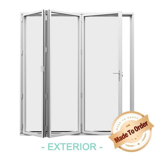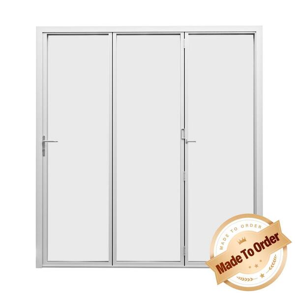 108 in. x 96 in. Left Swing/Outswing Double Tempered Glass White Aluminum Folding Patio Door