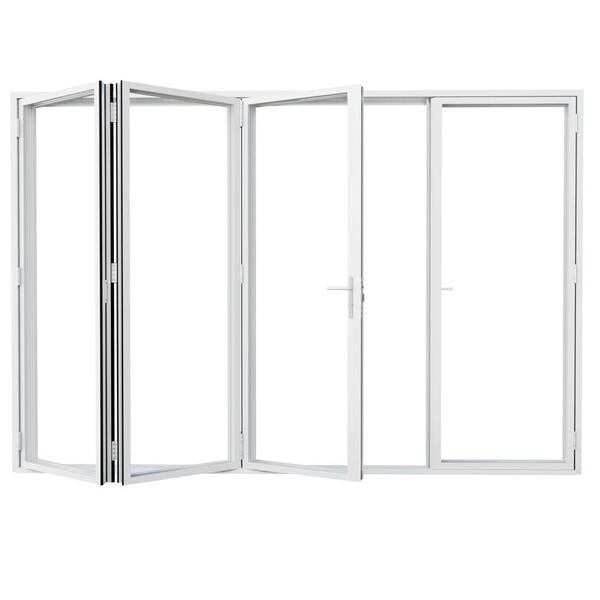117 in. x 80 in. Left Swing/Outswing Double Tempered Glass White Aluminum Folding Patio Door