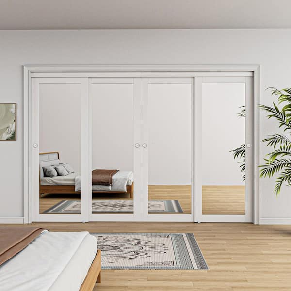 120 in. x 80 in. 1 Lite Mirror Glass White Finished MDF Interior Closet Sliding Door with Hardware and Handles