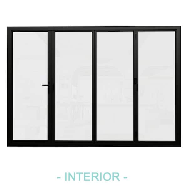 120 in. x 80 in. Right Swing/Outswing Double Tempered Glass Black Aluminum Folding Patio Door (3-folding plus 1-swing)