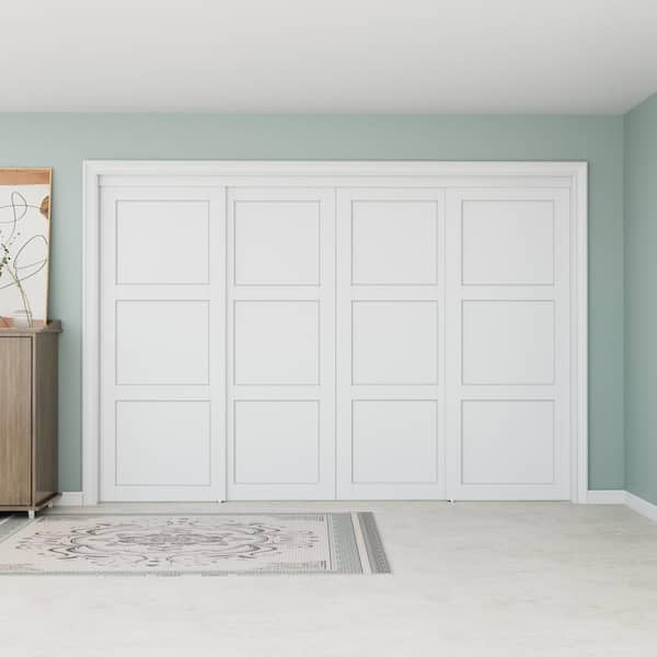 120 in. x 96 in. Paneled 3-Lite White Primed MDF Muti-Design Sliding Door with Hardware