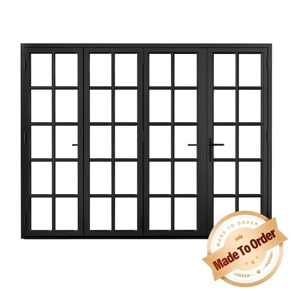 120 in. x 96 in. Right Swing/Outswing Double Tempered Glass Black Aluminum Folding Patio Door