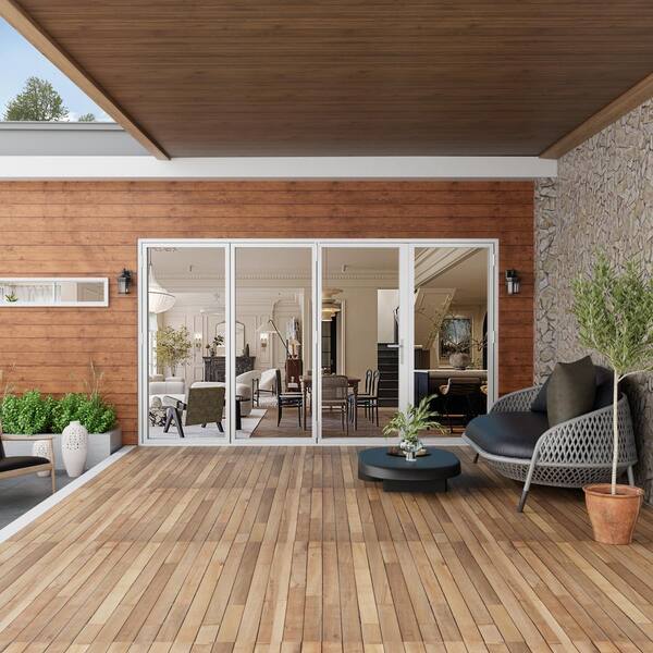 127 in. x 80 in. Left Swing/Outswing Double Tempered Glass White Aluminum Folding Patio Door