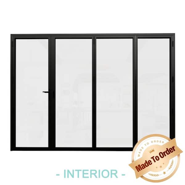 132 in. x 96 in. Right Hand Folding Double Tempered Glass Black Aluminum Folding Patio Door