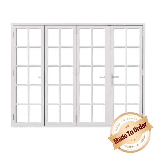144 in. x 80 in. Left Swing/Outswing Double Tempered Glass White Aluminum Folding Patio Door