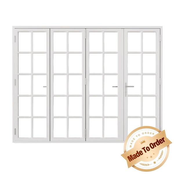 144 in. x 80 in. Right Swing/Outswing Double Tempered Glass White Aluminum Folding Patio Door