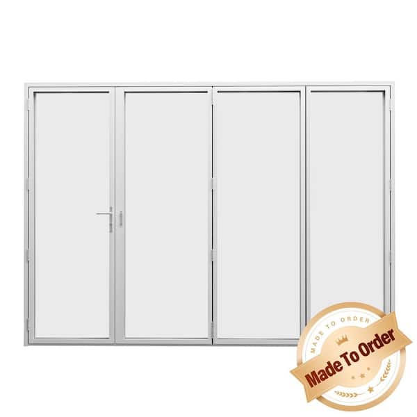 156 in. x 80 in. Right Swing/Outswing Double Tempered Glass White Aluminum Folding Patio Door