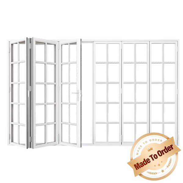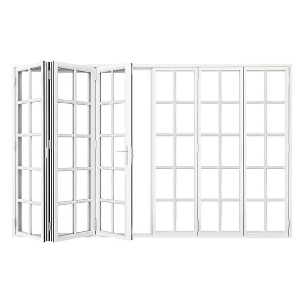 192 in. x 96 in. Bi-Parting Double Tempered Glass White Aluminum Folding Patio Door