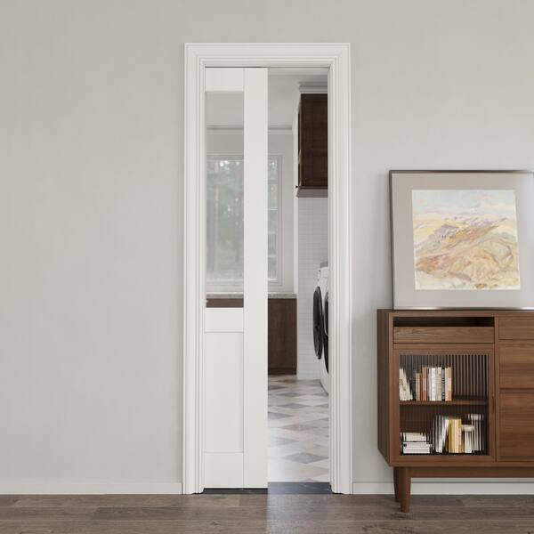 24 in. x 80 in. 1/2-Lite Clear Glass Primed Solid Core Glass Pocket Door Frame and Hardware Soft Close Included