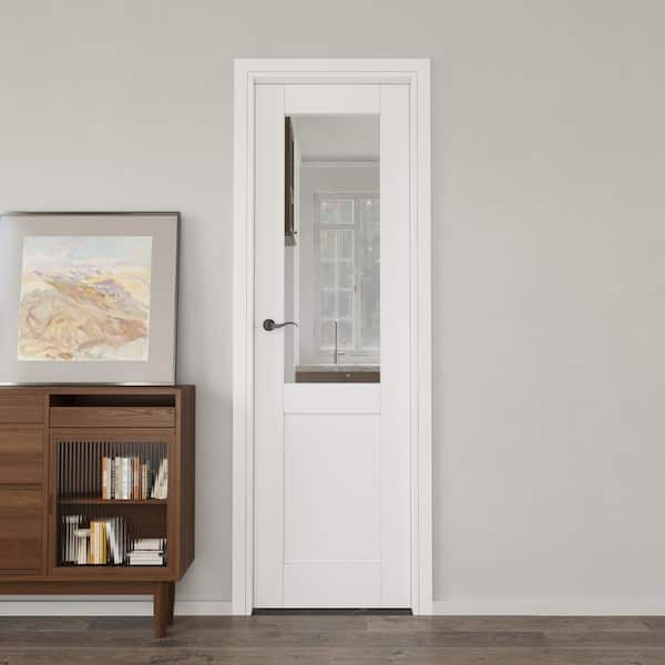 24 in. x 80 in. 1/2-Lite Clear Glass Right Handed White Solid Core MDF Prehung Door with Quick Assemble Jamb Kit