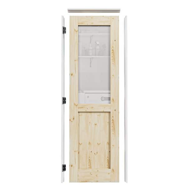 24 in.x 80 in. 1/2-Lite Frosted Glass Right Handed Unfinished Pine Single Prehung Interior Door with Quick Assemble Jamb