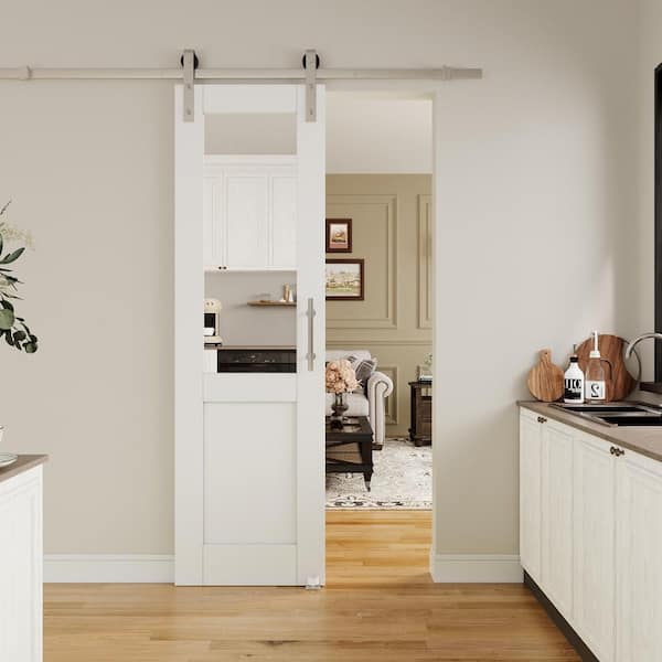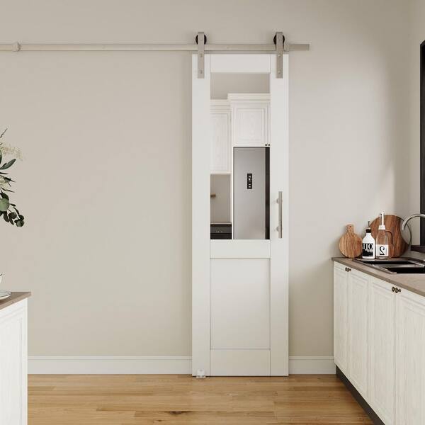 24 in. x 80 in. 1/2 Lite Mirrored Glass White Primed MDF Sliding Barn Door with Hardware Kit Nickel Plated