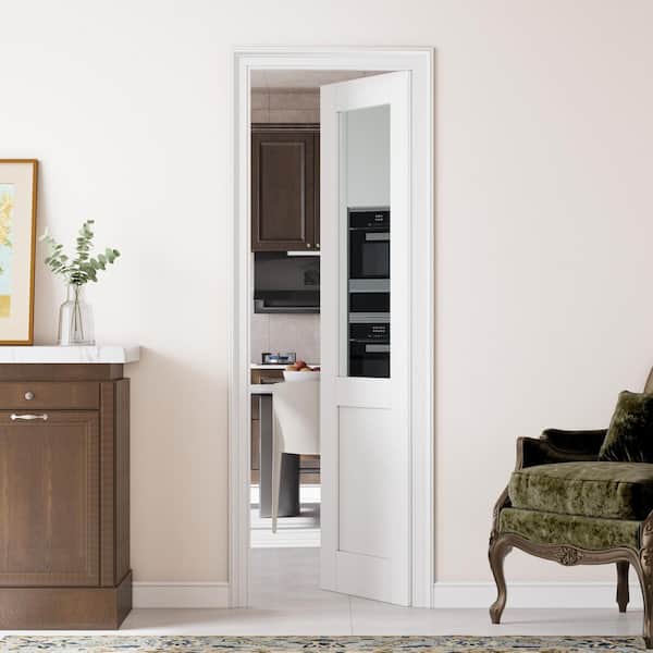24 in. x 80 in. 1/2 Lite Mirrored Glass and Solid Core MDF White Primed Standard Interior Door Slab