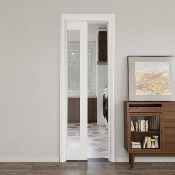 24 in. x 80 in. 1-Lite Clear Glass Primed Solid Core Glass Pocket Door Frame and Hardware Soft Close Included