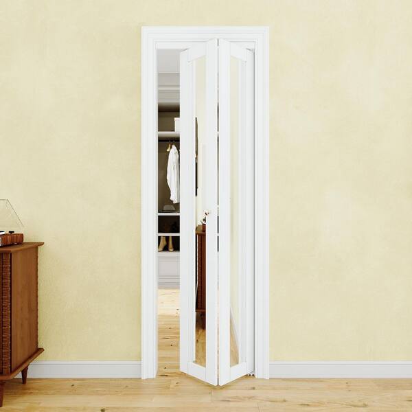 24 in. x 80 in. 1-Lite Mirror and MDF White Solid Core Prefinishied Closet Bi-fold Door with Hardware Kit